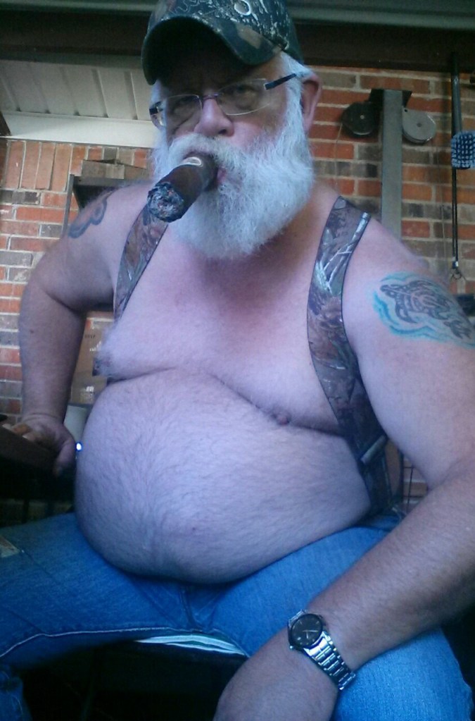 He fled, Arthur laughing as he ran off, got in his car and drove off, vowing never to go back there again…but that was before the headaches set in the next day, and the nausea, and the fact that he couldn’t seem to cum, no matter how horny he got. He…could still taste the cigar smoke on his tongue, and a few days later, drived by desperation, he went back to Arthur’s place, took another cigar from him, and spent another day as Arthur’s burly handyman, fixing up his house between servicing Arthur’s cock.
