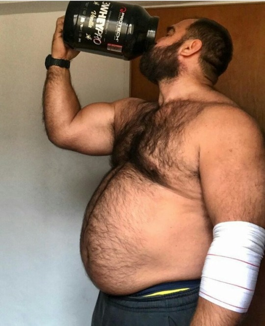 He was horrified at first–he tried to call the company, sent emails, but while he did…his mind kept wandering, thinking about how satisfied he’d felt when he’d drank that shake earlier, how…full he’d been. He was starting to get hungry, and he started snacking, and eating, but that emptiness wouldn’t go away, not until he gave in, mixed himself another shake using the powder…and sure enough, he grew again, his potbelly becoming a small gut–but now it was also covered in hair, and rubbing it felt…so damn good.