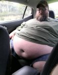 The large man in the back seat heaved himself forward between the front and passenger seat, breath stinking of tobacco. He reached forward and began kneading the driver’s cock through the ratty camo shorts he’d forced him to buy off the redneck they’d met at the truckstop fifty miles back. All it they had cost was one blow job, no teeth. They were grungy and a few sizes too big, but with a belt they stayed up.