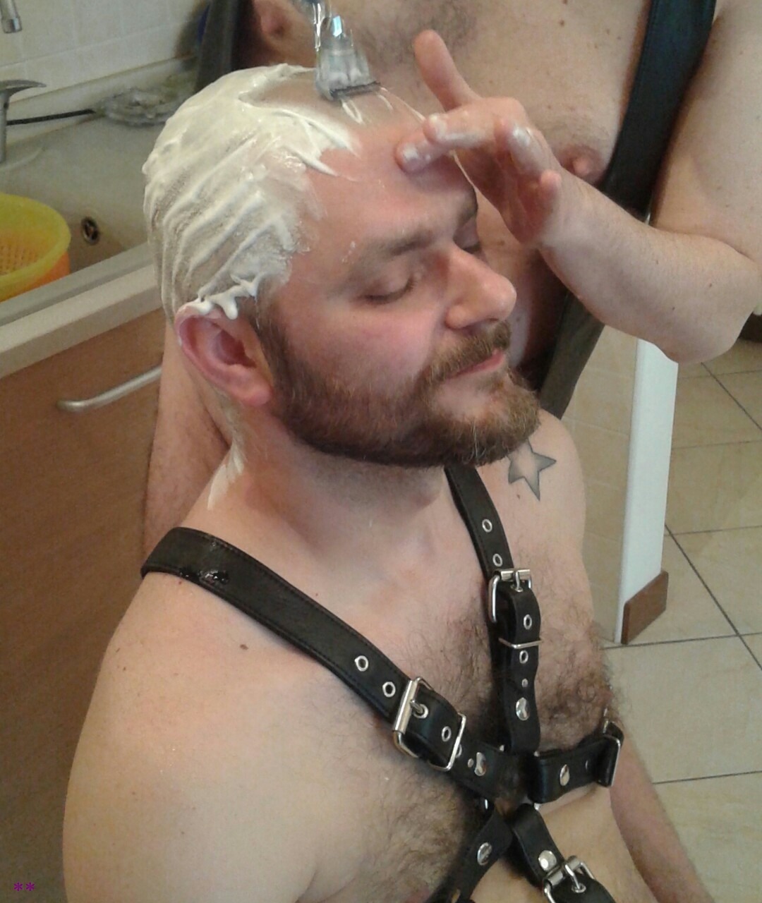 “Damn right it does,” Oscar said, rubbing his hand over Quint’s buzzed scalp, and then grabbed a razor and some shaving cream, smeared it all over his his slut’s head and started taking the hair down to the scalp. “You know slave, you’re gonna learn something real soon, you’re gonna learn how fucking vulnerable it feels to have not a lick of hair on your head. You’re gonna learn what it feels to have some butch motherfucker grab your smooth head in his hands, and ram his big cock down your throat. You’re gonna learn what it feels like to be a real bitch, and you’re gonna keep this dome smooth for me, right? You’re gonna love the feel of a hand on your scalp pushing you down onto your knees so much, that you’re never gonna grow your hair out again.”