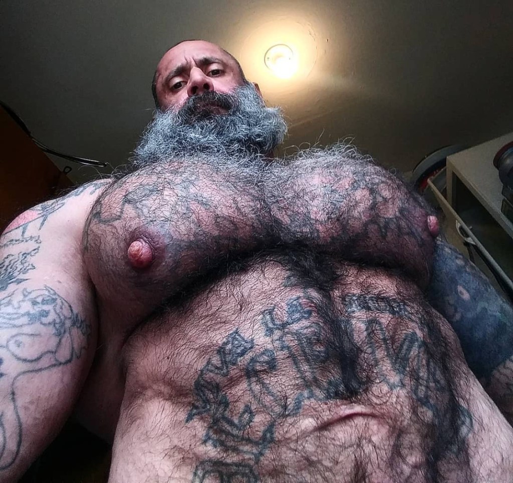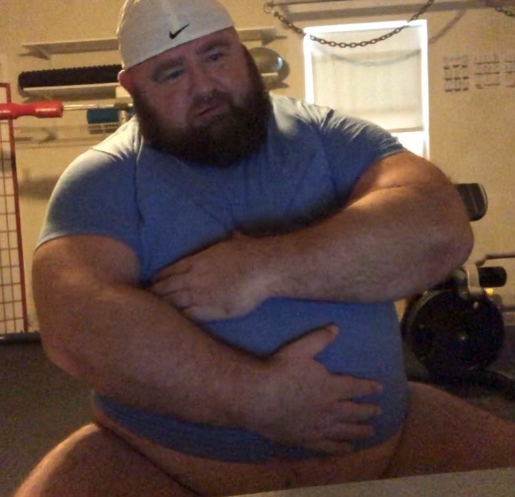 John’s hotel uniform was gone, and on his legs clung a pair of black stockings, attached to silk garters, pulled up over his hairy calves, and strapped to a belt around his waist under his gut, which left his crotch and ass exposed. Or at least, it exposed the black lace panties he’d been squeezed into at some point while he was out. The fabric was cutting into John a bit, especially at the parts of him where he had a little extra weight; his ass, under his gut, and around his thighs. John’s thick cock was bulging out, and his muscular ass had the material stretched thin. He had a silk and leather harness buckled around his chest, with a cut out for his pecs. The material seemed to actually push them up and out, making them even more prominent than they usually were. His hands were bound above his head, and then the rope was wound into an intricate weave between his upper arms and around his shoulders, before reaching above him to a beam in the ceiling. It was effective at suspending him upright, and the rope had been pulled tight enough that he couldn’t quite rest easily, forcing him to keep his heels raised up and standing on the balls of his feet.