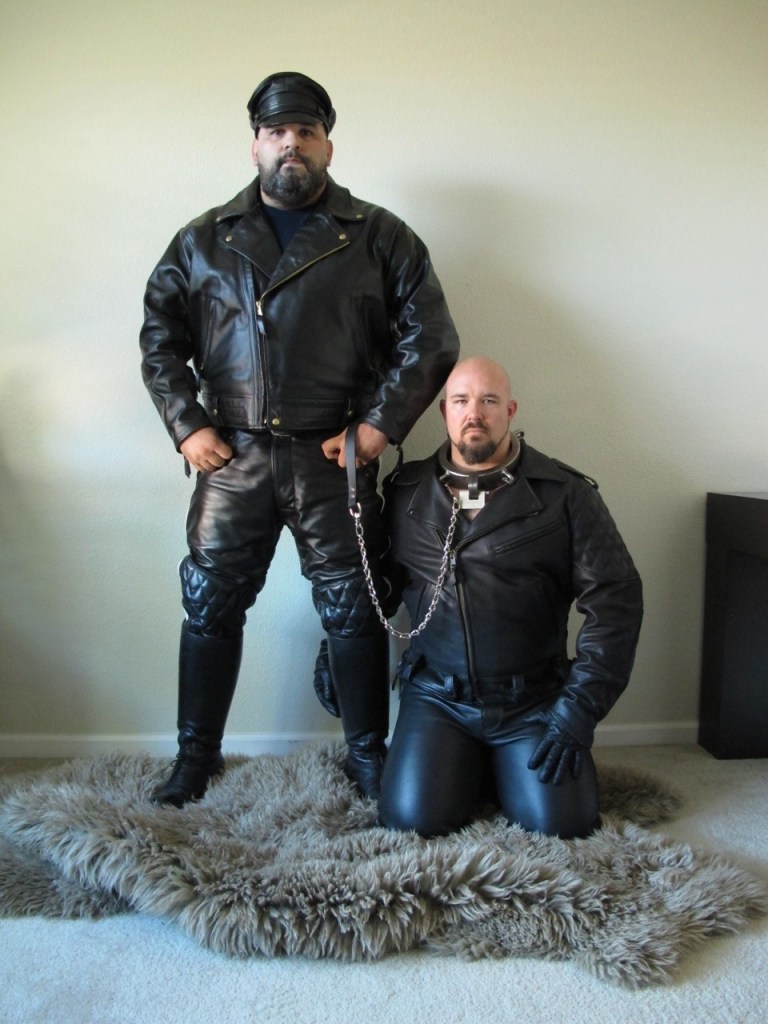 He knew it. He had faith. He knew who he was, who he had to be. He opened his eyes, ready to sneer in the frat daddy’s face, but he had to stare at the reflection in the mirror for a few moments, trying to sort out who he was looking at. There, on both sides, were the two leather men, but in between them–no, no that couldn’t be him, it couldn’t be him! He looked at the stranger in his late fifties, looked at the full beard, looked at the gut sagging out from under the ill-fitting athletic department t-shirt he had on, the cumstained gym shorts–he was the coach, he wasn’t the janitor! He wasn’t!