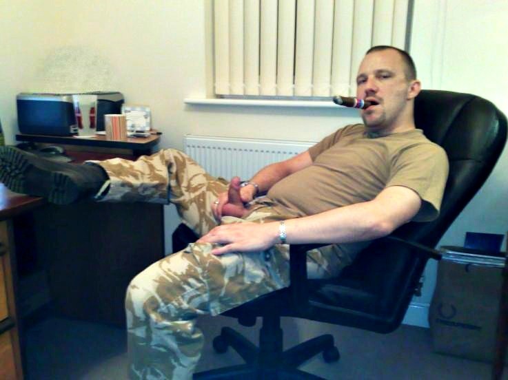 “Fuck boy,” the sergeant said, sitting back in his chair, “I know I’m real damn horny–fuck. Get’s damn hot in here in the afternoons, and my musk just fuckin’ makes me want to nut all over the place. How ‘bout you boy?” the sergeant said, groping his package, “Seems like you’re enjoying it too, from that bulge in your pants there.”