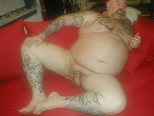 He was much larger than he’d been before, easily six foot three, and packed with muscle, with a healthy, firm gut above his massive cock. His pecs in particular were plump and thick, with two rings through his meaty tits. He had hair all over, some of it brown, some of it silvery grey, but rather than being distributed symmetrically, the two colors intermingled like patches across his body. Then, there was his cock, his massive, freakish cock, and heavy balls below. He turned around, nervous at what he’d find, and there, sure enough across his back, was a the brand from the night before turned into a tattoo–STUD SLAVE. There on his ass was the little pig brand tattoo as well.