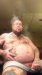 The hallway was littered with Bud’s clothes, and Carl took a moment to smell the stale, humid air, feeling his cock shiver at the musk. It smelled like home, it smelled like him even. He lifted his arm up and took a deep smell of himself, and realized his passing thought was true–he and Bud did smell the same, that same scent of heavy musk and stale beer which had so attracted him to him at first…hadn’t it? Or had he thought it was disgusting? It seemed so fuzzy now, and it didn’t really matter. Still, he should probably get some clothes of his own, because he’d simply been wearing all of Bud’s cast offs and none of them were in particularly good shape, and he was so fat that many didn’t even fit. He was wearing a pair of clammy, jersey boxers stretched tight over his thighs and ass, and the wifebeater he had was stained with cigar ash, food and sweat, with one hole in the breast large enough that his moob tended to hang out of it if he did nothing.